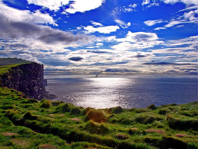 So glad to find your post with the SIMPLY AWESOME photos and writing!!! The Puffins are perfectly captured, but I must admit that I was partial to the beauty of the intensely blue sky laced with spritzes of fluffy grey & white clouds, the shimmer of the sun sparkling on the water, the lush green of the grass, the outline of the cliff........what a feast for my eyes!!!!
